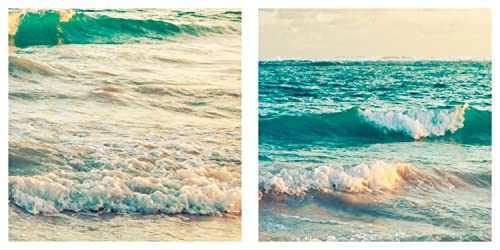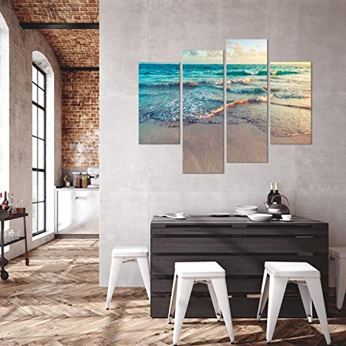 Decomonkey Quadro Stampa su Tela moderno Mare 126x98 cm 4 pezzi Murale Fotografia Immagini Decorazione da parete Grafica Natura Paesaggio Spiaggia Sabbia Onde Orizzonte blu beige