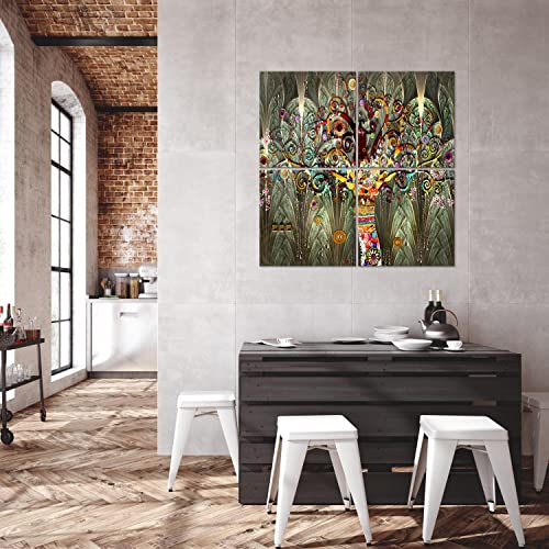 Decomonkey Quadro Stampa su Tela moderno Albero della vita Set di 4 pezzi 20x20 cm Murale Fotografia Immagini Decorazione da parete Grafica Gustaw Klimt Astratto Arte brillante colorato