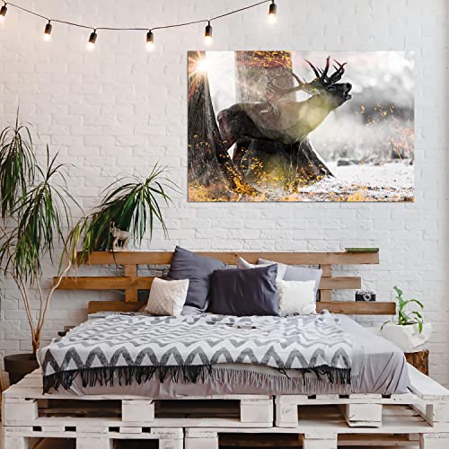 Decomonkey Quadro Stampa su Tela moderno Cervo 120x80 cm 1 pezzo Murale Fotografia Immagini Decorazione da parete Grafica Natura Albero Animali Bosco Sole Astratto grigio