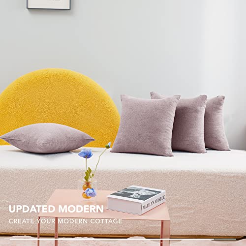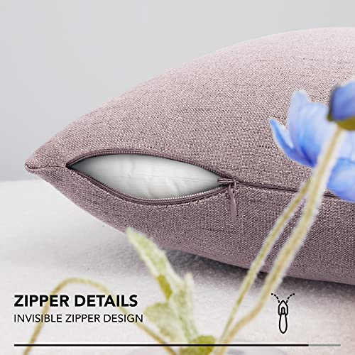 Deconovo Set di 4 Copricuscini Moderne Morbido Resistente in Finto Lino con Cerniera Invisibile, 45x45cm, Rosa Scuro