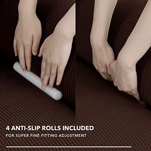 Deconovo Copridivano 1 Posto Elasicizzato Fodera Protettiva Divano Copripoltrona con Braccioli per Soggiorno Cioccolato