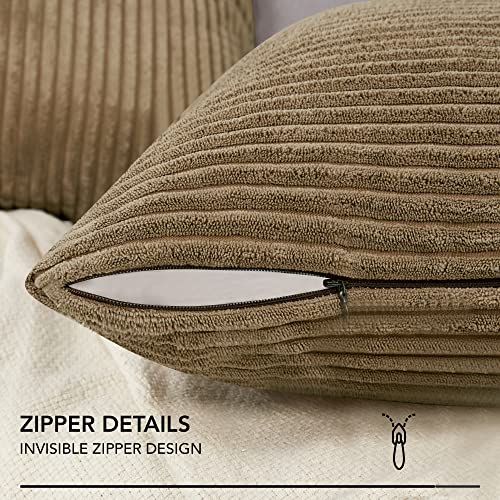 Deconovo Federa per cuscino in velluto a coste, 50 x 50 cm (larghezza x lunghezza), federa per cuscino per casa, soggiorno, camera da letto, giardino, tortora, 2 pezzi