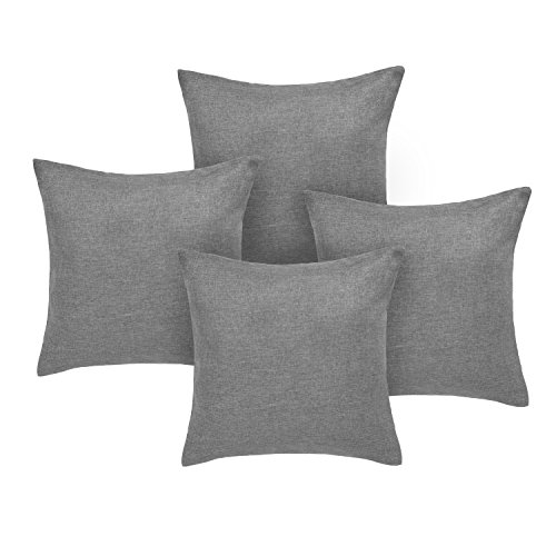Deconovo Set di 4 Fodere Cuscini Divano Decorativi Copricuscini Letto in Lino Moderni 45x45cm Grigio Scuro