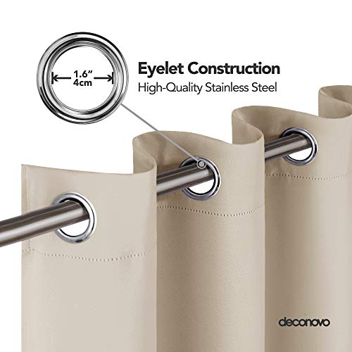 Deconovo Tenda Oscurante Termica Isolante con Occhielli 100% Poliestere 132x242 CM Beige Chiaro Un Pannello