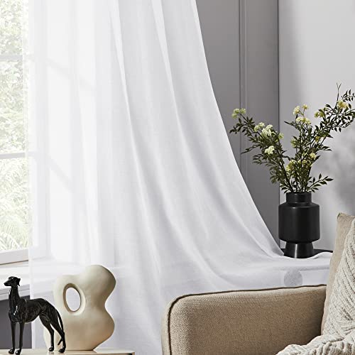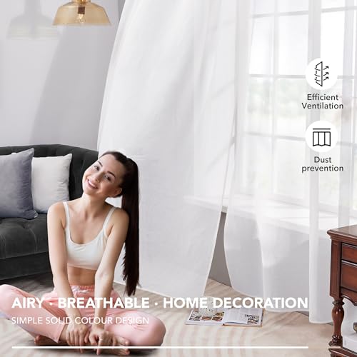 Deconovo Tende Camera da Letto Tende per Interni Moderne 2 Pezzi Trasparenti in Voile per Casa Finestre 140x290 CM Bianco