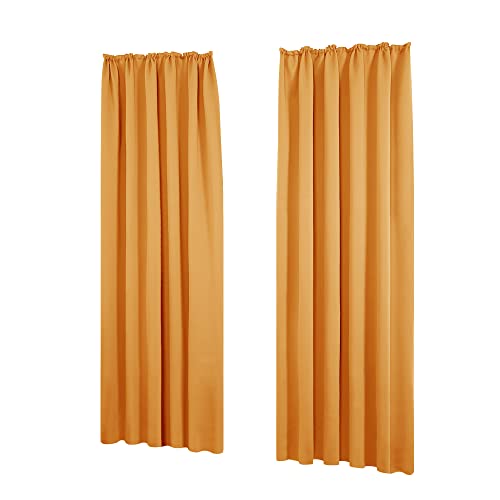 Deconovo Tende Camera da Letto 2 Pezzi Coprente Oscuranti Termiche Isolanti Tende Soggiorno Moderne Elegante con Nastro per la Casa 140x175 CM Arancione