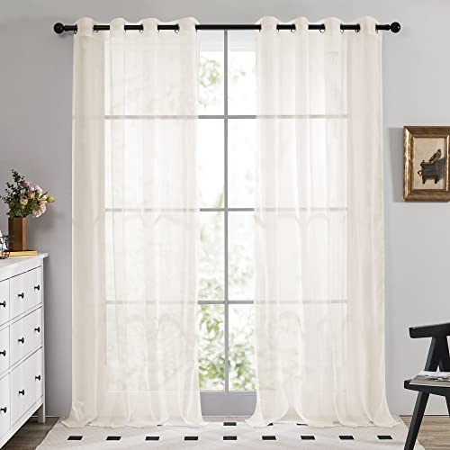 Deconovo Tende per Finestre in Voile Trasparenti 2 Pezzi 140x183 CM, Tende per Interni Moderne per Cameretta Bambini con Occhieli Beige