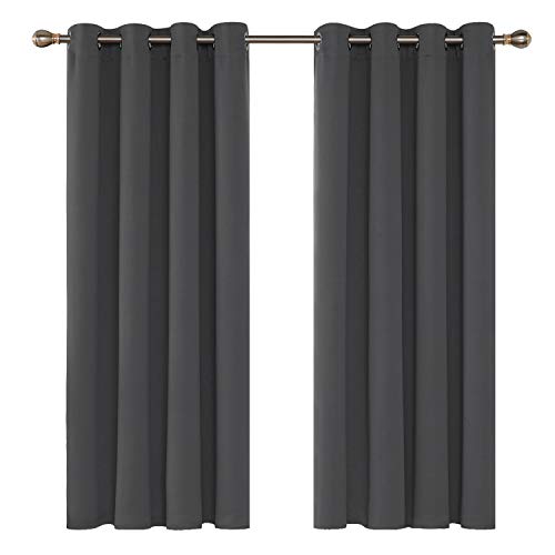 Deconovo Tende per Interni Oscuranti 2 Pezzi 180 CM Altezza, Tende Camera da Letto Coprente Moderne con Occhielli, 140x180 CM (Larghezza x Altezza), Grigio Scuro