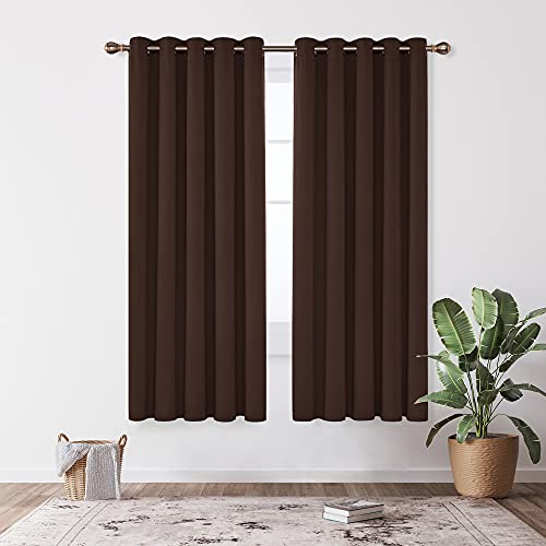 Deconovo Tende per Interni Oscuranti Termiche Isolanti, Tende Camera da Letto Tinta Unita 2 Pezzi, con Occhielli, 168x183 CM (Larghezza x Altezza), Cioccolato