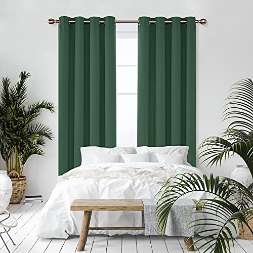 Deconovo Tende per Interni Oscuranti Termiche Isolanti, Tende Camera da Letto Tinta Unita 2 Pezzi, con Occhielli, 140x210 CM (Larghezza x Altezza), Verde Scuro