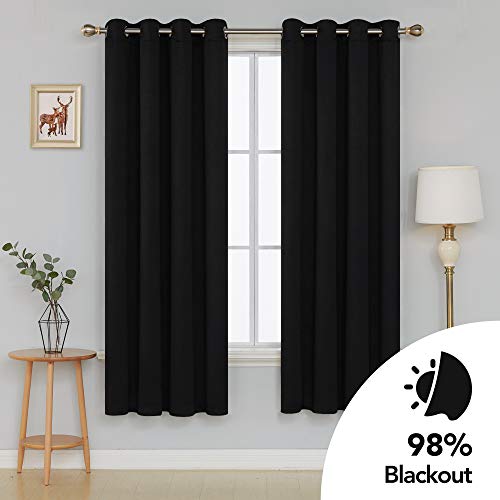 Deconovo Tende Oscuranti Termiche Isolanti con Occhielli Tende da Sole Per Casa Moderna 100% Poliestere 135x240 CM Nero 2 Pannelli