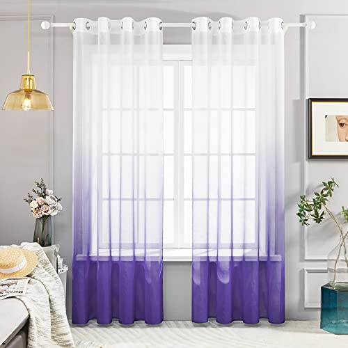 Deconovo Tende Semi-Trasparenti per Interni in Voile, Tende per Interni Moderne con Anelli per Finestre 2 Pannelli, 140x245 CM (Larghezza x Altezza), Viola
