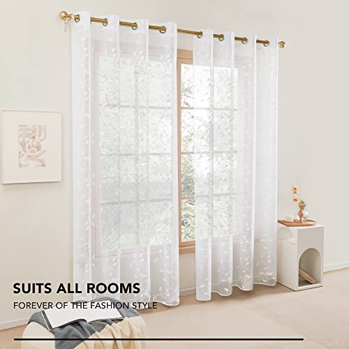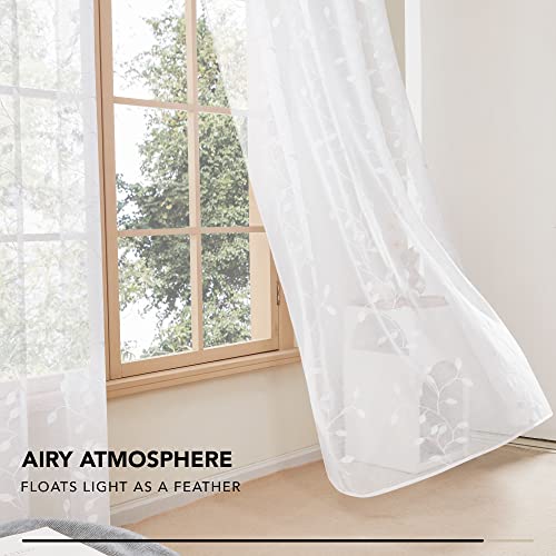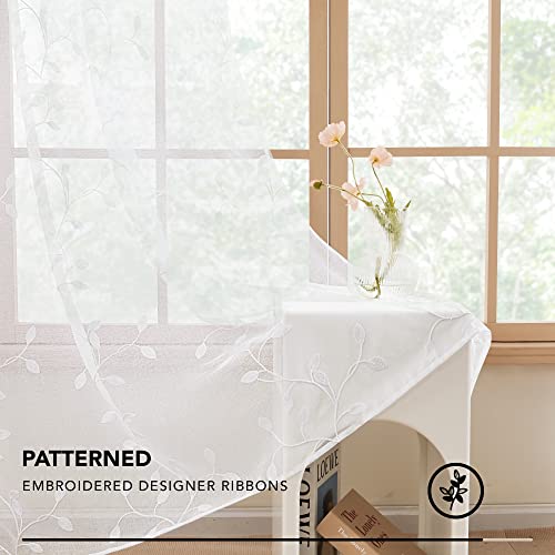 Deconovo Tende Soggiorno Moderne 2 Pezzi Trasparenti Corte Cameretta Bambini Moderne in Voile Ricamate con Occhielli per Salotto Eleganti 140x180 CM Bianco