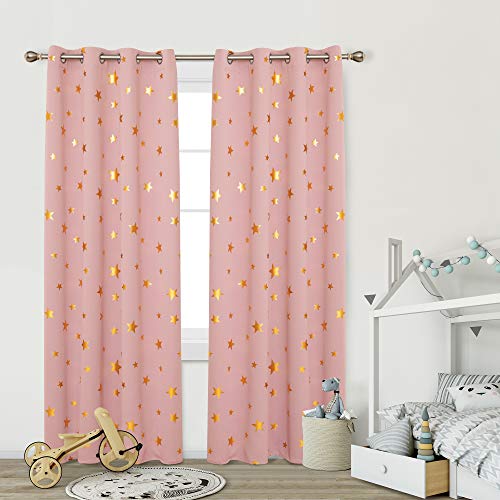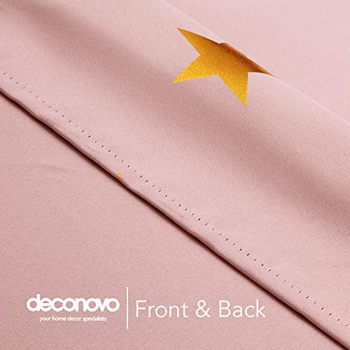 Deconovo Set di 2 tende termiche anti fredde, oscuranti, con occhielli e stelle dorate, design moderno, tende isolanti per il soggiorno dei bambini, 117 x 138 cm, colore: rosa corallo