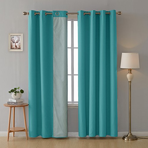 Deconovo Tende Termosiolanti in Tessuto Oxford con Rivestimento Oscurante in Alluminio per Il Soggiorno 117x138cm Turchese 2 Pannelli