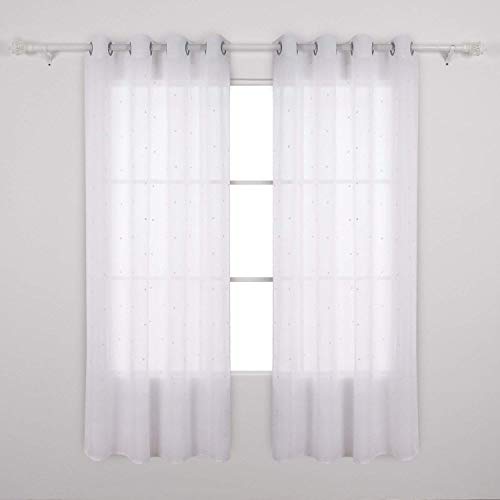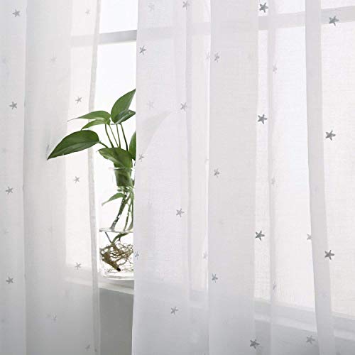 Deconovo - Tende in lino trasparente con ricamo a forma di stella, tessuto bianco, 290 x 140 cm