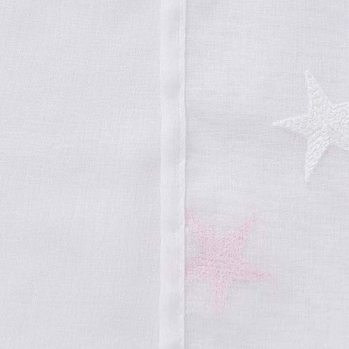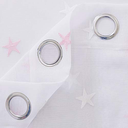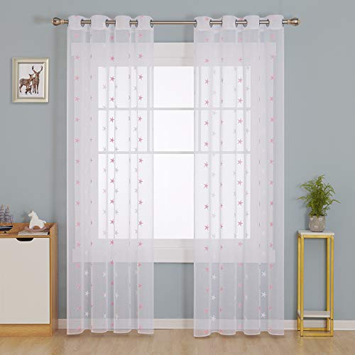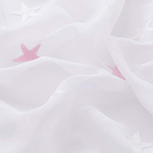 Deconovo Tende Trasparenti Voile con Occhielli per La Stanza della Ragazza Moderne con Grandi Stelle Ricamate 140x245 CM 2 Pannelli Rosa e Bianco