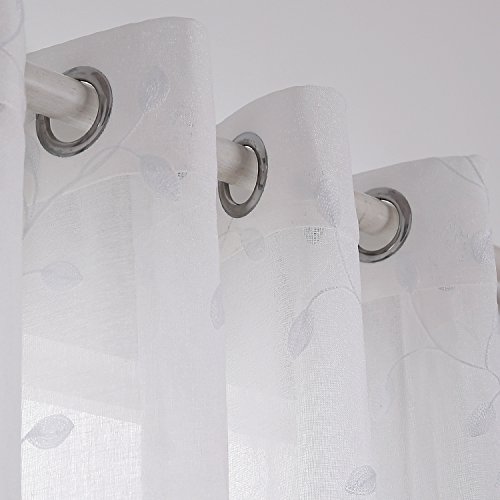 Deconovo Tende Trasparenti in Voile Ricamate con Anelli Finestre Soggiorno 140x245cm Bianco 2 Pannelli