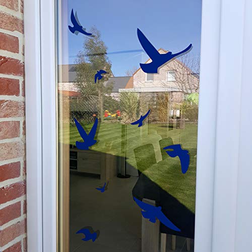 Decooo.be Adesivi anticollisione per Uccelli (Set di 17 Sagome) - per Evitare Che Gli Uccelli urtino Il Vetro - Colore: Blu Scuro