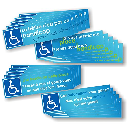 Decooo.be - Adesivi per posti Auto riservati a disabili, 4 Versioni Diverse con Scritta in Lingua Francese, Confezione da 20 (4 x 5 Adesivi)