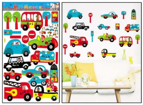 Room Decor for Kids - Grandi adesivi da parete per la camera dei bambini, motivo con macchine della polizia e camion dei vigili del fuoco