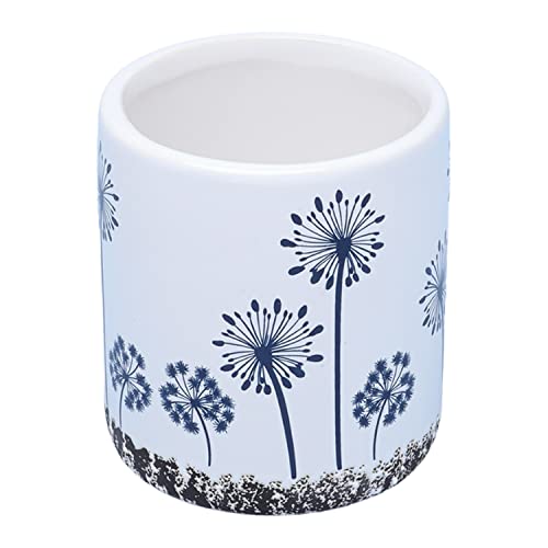 G Decor White and Blue Ceramic Bathroom Set, Ceramic Bathroom Accessory, Includes Liquid Soap or Lotion Dispenser with Both Pumps Included in Set, Toothbrush Holder, Tumbler, Soap Dish