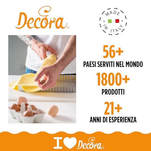 SOSTENIBILITA' - Decora dimostra un forte impegno per la sostenibilità ambientale, avendo installato un impianto fotovoltaico nella sua sede che riduce le emissioni di anidride carbonica di oltre 10.000 Kg all'anno. I prodotti Decora sono caratterizzati da un'anima "green", realizzati con materiali riciclabili, compreso il packaging, per il quale si è scelto di usare inchiostri a base vegetale, garantendo sicurezza alimentare e carta certificata FSC, da foreste ben gestite.