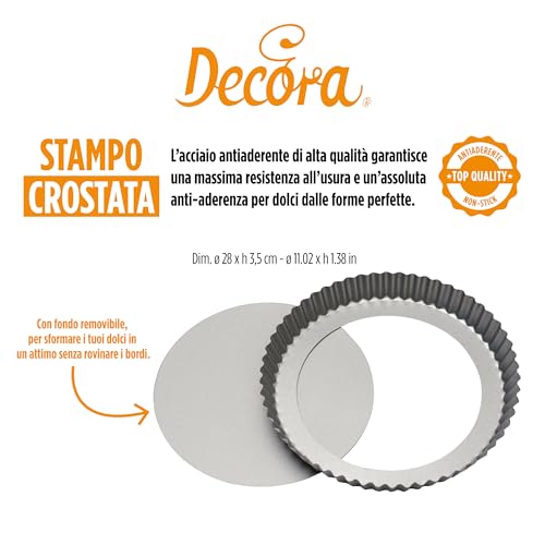 Decora, 0070018 Stampo per Crostata con Fondo Mobile in Acciaio Antiaderente, Tonda Ø 28 X 3,5 cm, Rende facile Sformare i Dolci, Design Professionale