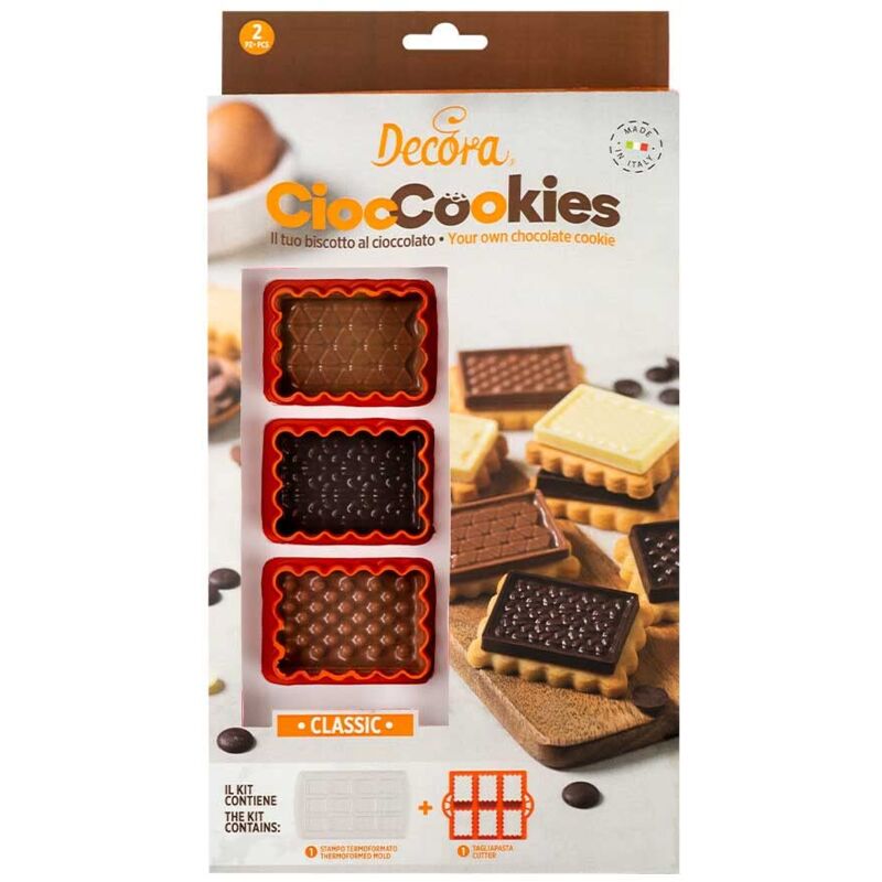 Set da 2 pezzi, perfetto per realizzare in modo semplice e veloce delle gallette ricoperte con una placchetta di cioccolato personalizzata. Il set è composto da 1 tagliapasta in plastica multi-sagoma con pratici manici laterali perfetto per realizzare la base del biscotto ed 1 stampo termoformato per sformare dei cioccolatini a tema. Dimensione tagliapasta: 6 x 4,3 x 2,2 h cm Dimensione stampo: 29,4 x 17,3 x 1 h cm.