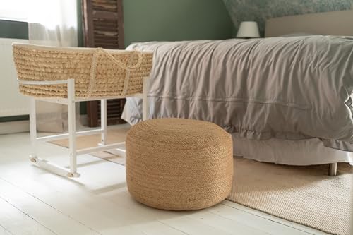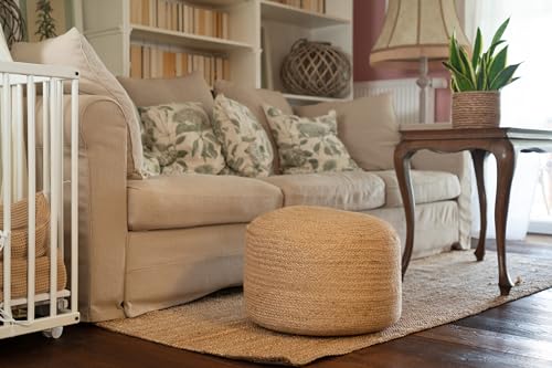 Decorasian Pouf Sgabello - Poggiapiedi BZW. Poggiapiedi intrecciato in iuta - Pouf in stile boho - rotondo