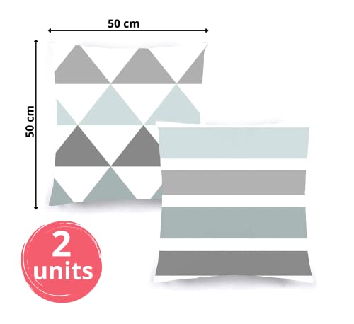 Decoratea Federe per Cuscini - Federe per Cuscino Decorativo (Set di 2) per Divano, Letto, Sedia, Soggiorno, Auto, Molto morbide, Moderne e con Cerniera Invisibile (Nordico Blu, 50 x 50 cm)