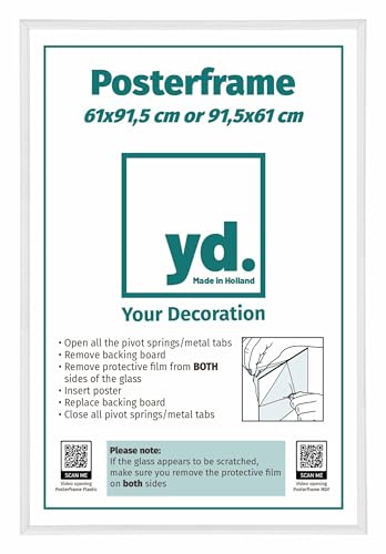 Yd. Your Decoration - Cornice 61x91.5 cm - Cornice poster in plastica con vetro sintetico - antiriflesso - ottima qualità -Bianco Lucente - Paris