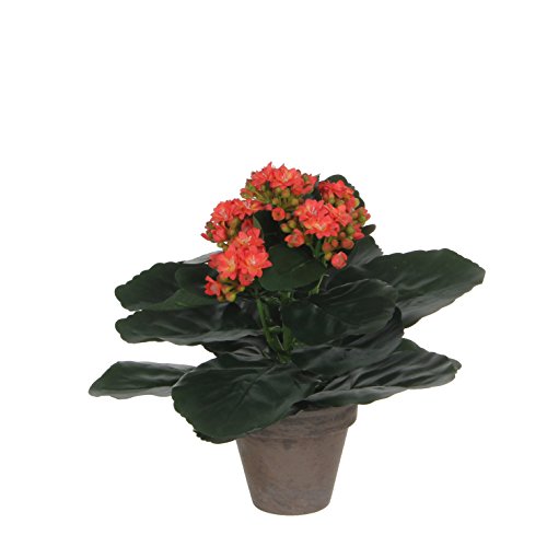 MICA Decorations 949737 Kalanchoe in Vaso di Stan, Poliestere, Arancione, 23 x 23 x 22 cm
