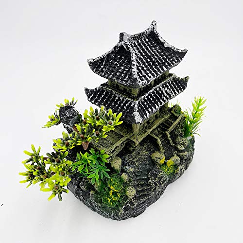 Fish Tank Decorations Aquarium Decoration Medium-Sized/6.3inch Tall Ornaments Accessories Fish Hides Retro Asia Style House (House-A)