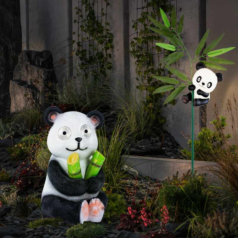 Descrizione I panda assicurano sempre un look eccitante, inclusa questa lampada solare da 29,3 cm a forma di panda. Con questo panda, gli occhi iniziano a brillare di una calda luce bianca al tramonto. Inoltre, il bambù che il piccolo panda tiene tra le braccia brilla di una fredda luce bianca quando fa buio, creando bellissimi effetti di luce nel tuo giardino. Il panda si illumina per un massimo di 8 ore quando è completamente carico ed è un vero colpo d'occhio nel tuo giardino. Posizionato in un letto, crea bellissimi accenti e attira l'attenzione di tutti. Le lampade a LED sono installate in modo permanente. Dettagli lampada • Tipo di lampada: lampada solare • Materiale: plastica • Colore: nero, bianco, verde • Panda seduto • Tempo di combustione: circa 6-8 ore • Contatore • Batteria inclusa: 1xAA 300mAh Ni -Mh 1.2V • Grado di protezione: IP44 • Lunghezza x larghezza x altezza in cm: 18,3 x 22,8 x 29,3 • Occhi illuminanti: 2x LED • Lampadine incluse: Sì (installate in modo