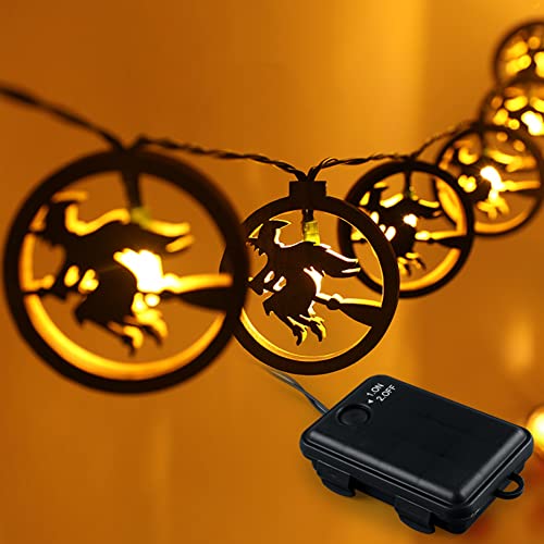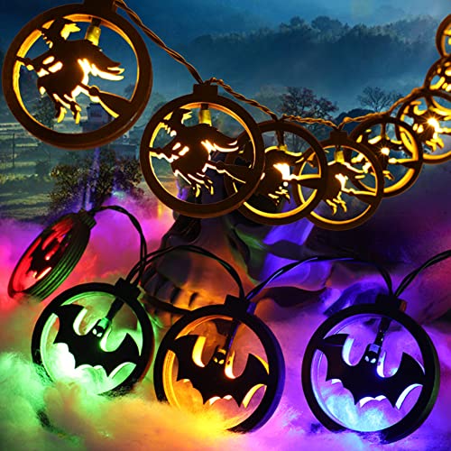 Luci Decorative per Halloween d'atmosfera in legno, Streghe a batteria Spider Webs Scheletri Pipistrelli String Lights, Halloween String Lights Decorazioni p(Size:colore caldo,Color:procedura guidata)