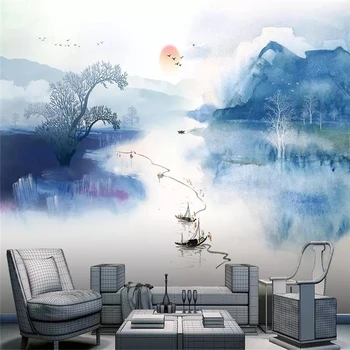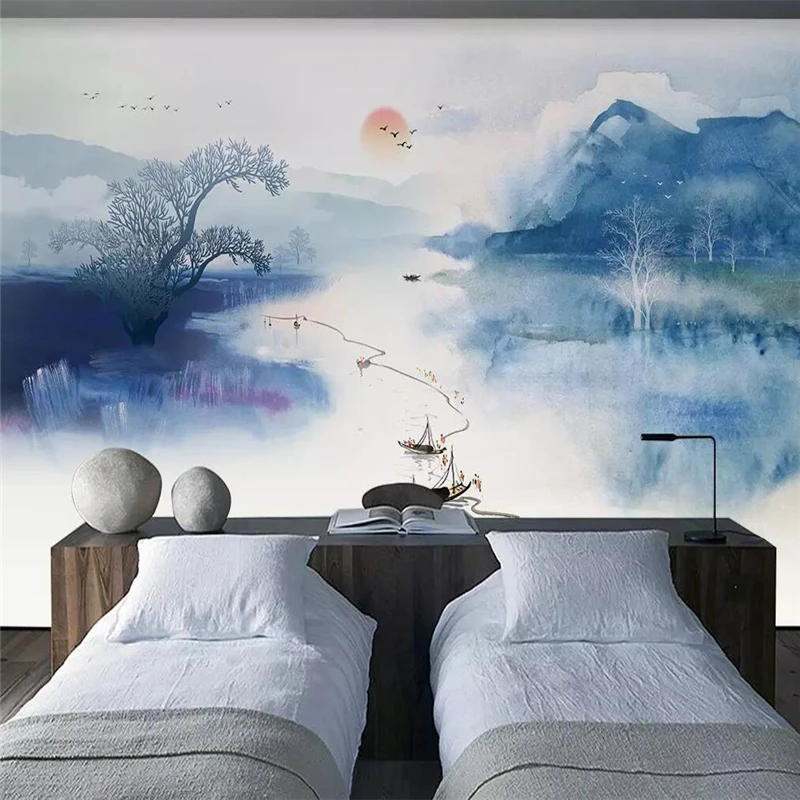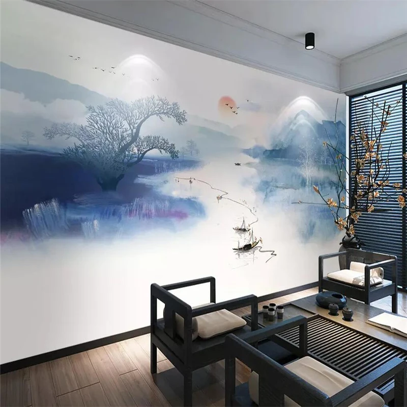 Decorative wallpaper New Chinese ink artistic conception landscape wall cloth background wall decorative painting