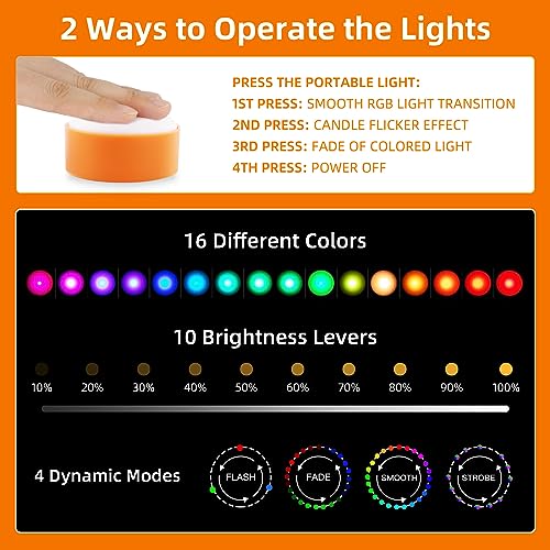 Decorazione di Halloween che cambia colore WRGB: 4 modalità di illuminazione (flash, stroboscopico, dissolvenza, uniforme) commutabili, 16 colori (bianco caldo e altri 15 colori), aggiornamento della modalità colore singolo 16 modalità colore possono migliorare l'atmosfera di Halloween, puoi scegliere qualsiasi colore per adatta alle tue lanterne Jack O' per decorare.