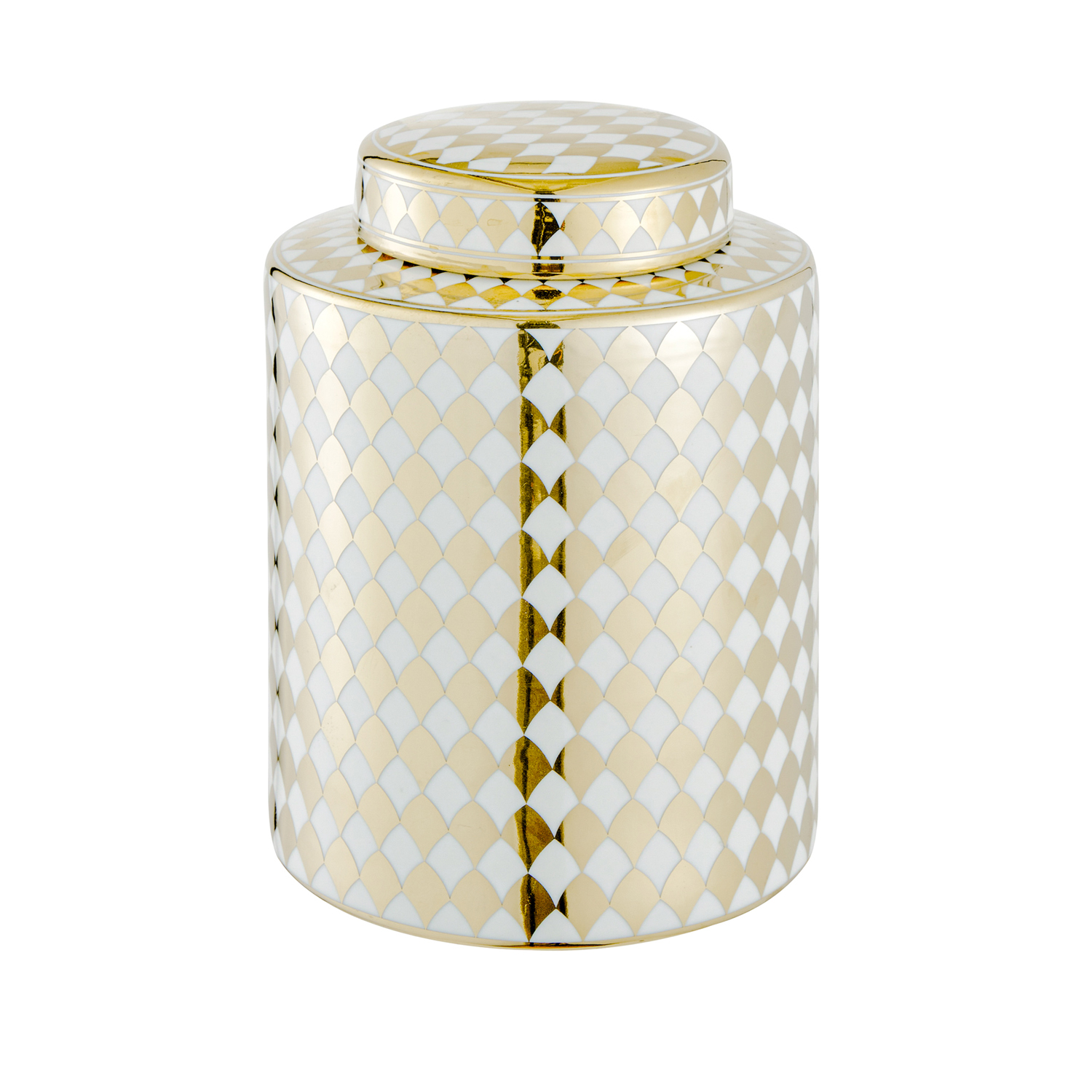 Creare in casa un ambiente che ti rispecchi e parli di te è fondamentale per sentirla veramente tua. Esprimi la tua eleganza e attenzione ai dettagli raffinati con questo delizioso vaso in porcellana. La preziosa decorazione in oro distribuita sulla superficie aggiunge luce all'intera stanza. Dimensioni: 19,50 x 27 x 19,50 cm.