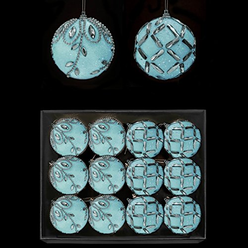 12 decorato di cristalli di ghiaccio blu baubles con glitter - Size 70 millimetri