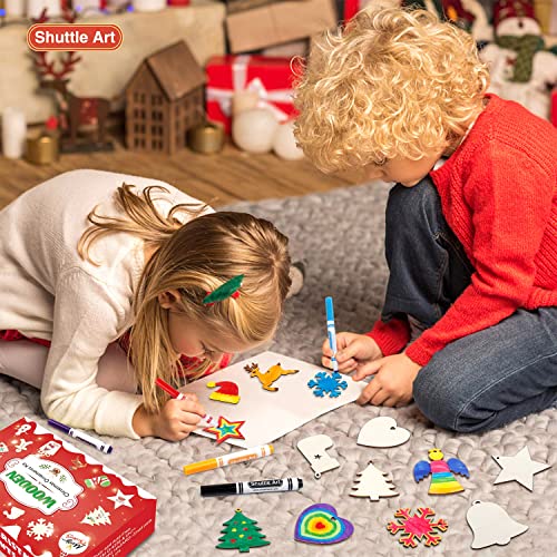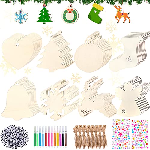 【Pacchetto include】 80pcs ornamenti di Natale in legno in 8 stili, ogni stile comprende 10 pezzi (alce di Natale, fiocchi di neve, campane di Natale, albero di Natale, palla di Natale, angelo, calzino di Natale, forma d'amore). Sono inclusi anche 12 penne colorate, 2 adesivi diamantati, 40 occhi in plastica in vari e 80 corde.