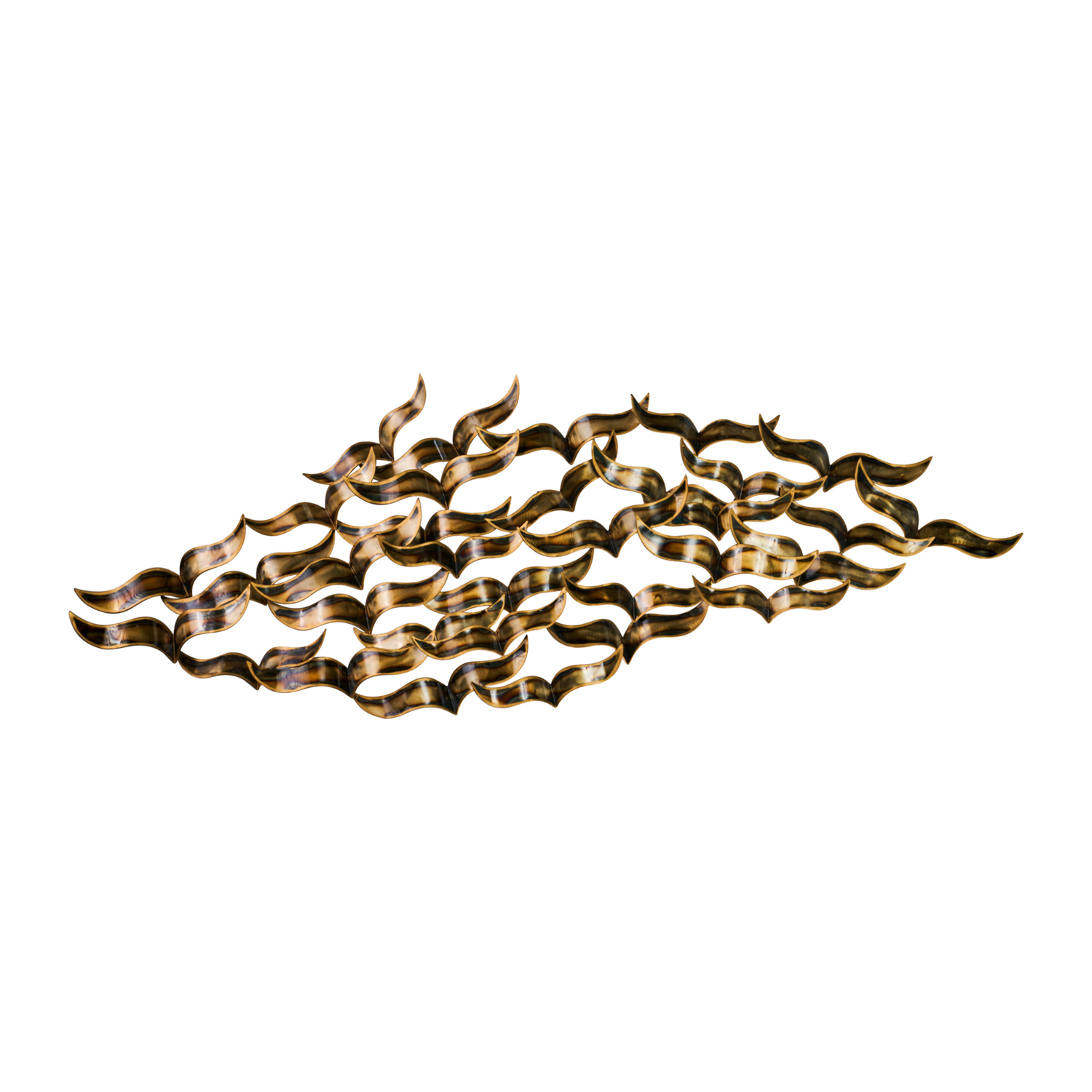 Questa decorazione rifinita in oro anticato è realizzata al 100% in ferro e rappresenta, in modo stilizzato, uno stormo di uccelli in volo. L'oro antico aggiunge un tocco prezioso a questo pezzo artistico da poter utilizzare per abbellire le pareti di casa o dell'ufficio. Dimensioni: Larghezza 115 cm;