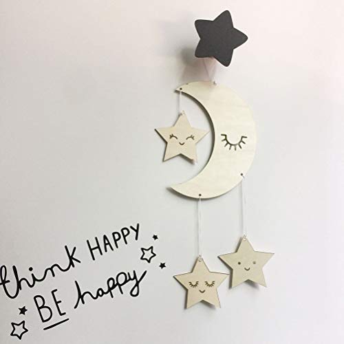 Decorazione da appendere in legno a forma di luna e stelle con ciglia per gli occhi, da appendere al soffitto per la cameretta dei bambini