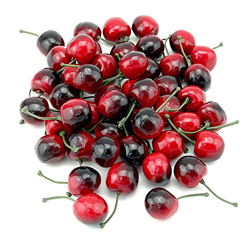 48 X decorazione ciliegie 2,8 cm, Rosso/Nero, artificialmente, frutti con manico * * *
