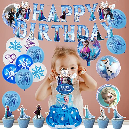 Decorazione Compleanno Frozen Palloncini Frozen Palloncino Striscioni Buon Compleanno Frozen Cake Topper Frozen per Bambini Ragazze Decorazioni per Feste di Compleanno
