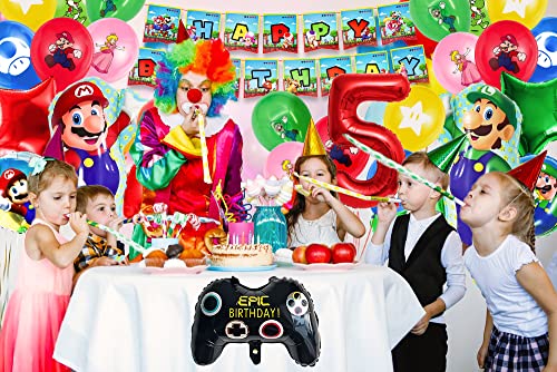 Decorazione Compleanno Mario,Palloncini da Mario 30pcs, Mario Rosso Numero 5 Palloncini, Mario Palloncini Party, Ragazzo Ragazza 5° Compleanno Kit di Palloncini per Feste Palloncini in Lattice
