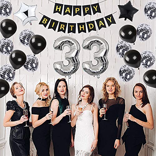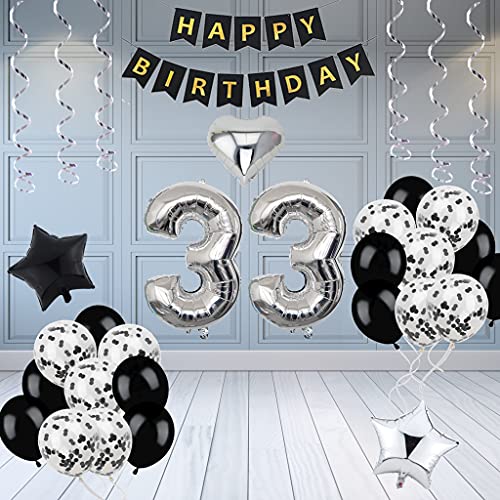 Decorazione 33° compleanno, Decorazione compleanno 33 anni uomo, Deco 33° compleanno uomo, Deco 33 palloncini neri e argento, Deco 33° compleanno uomo, Deco 33° compleanno uomo donna
