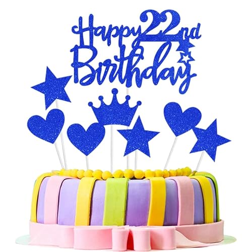 22° festa di compleanno, colore blu: inclusi palloncini in pellicola digitale da 32 pollici + festone Happy Birthday + 10 palloncini in lattice + 4 palloncini con coriandoli + 2 palloncini a forma di cuore (18 pollici) + 2 palloncini a forma di stella (18 pollici) + stella decorativa da appendere (4 metri) + nastri