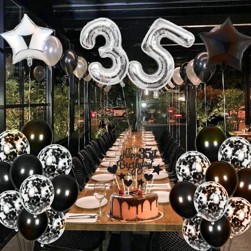 Decorazione per 80° compleanno, colore nero argento: include palloncini in pellicola da 32 pollici "80", ghirlande Happy Birthday, 10 palloncini in lattice, 10 palloncini con coriandoli, 2 palloncini a stelle da 18", 6 decorazioni da appendere, 1 decorazione per torta Happy 80th Birthday, 5 decorazioni per torta a forma di cuore, 5 decorazioni per torte, 1 nastri per palloncini.