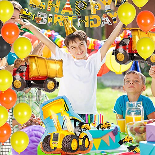 【Compleanno dei bambini della decorazione dell'escavatore】 3 palloncini in alluminio (2 camion e 1 escavatore), 35 palloncini in lattice, 1 set BAU Happy Birthday ghirlanda banner, 1 set bandiera del rimorchio da costruzione trailer 4 diversi tipi di piccoli veicoli da costruzione (escavatore 、 camion 、 bulldozer 、 gru) , 2 rotoli d'argento Bande.